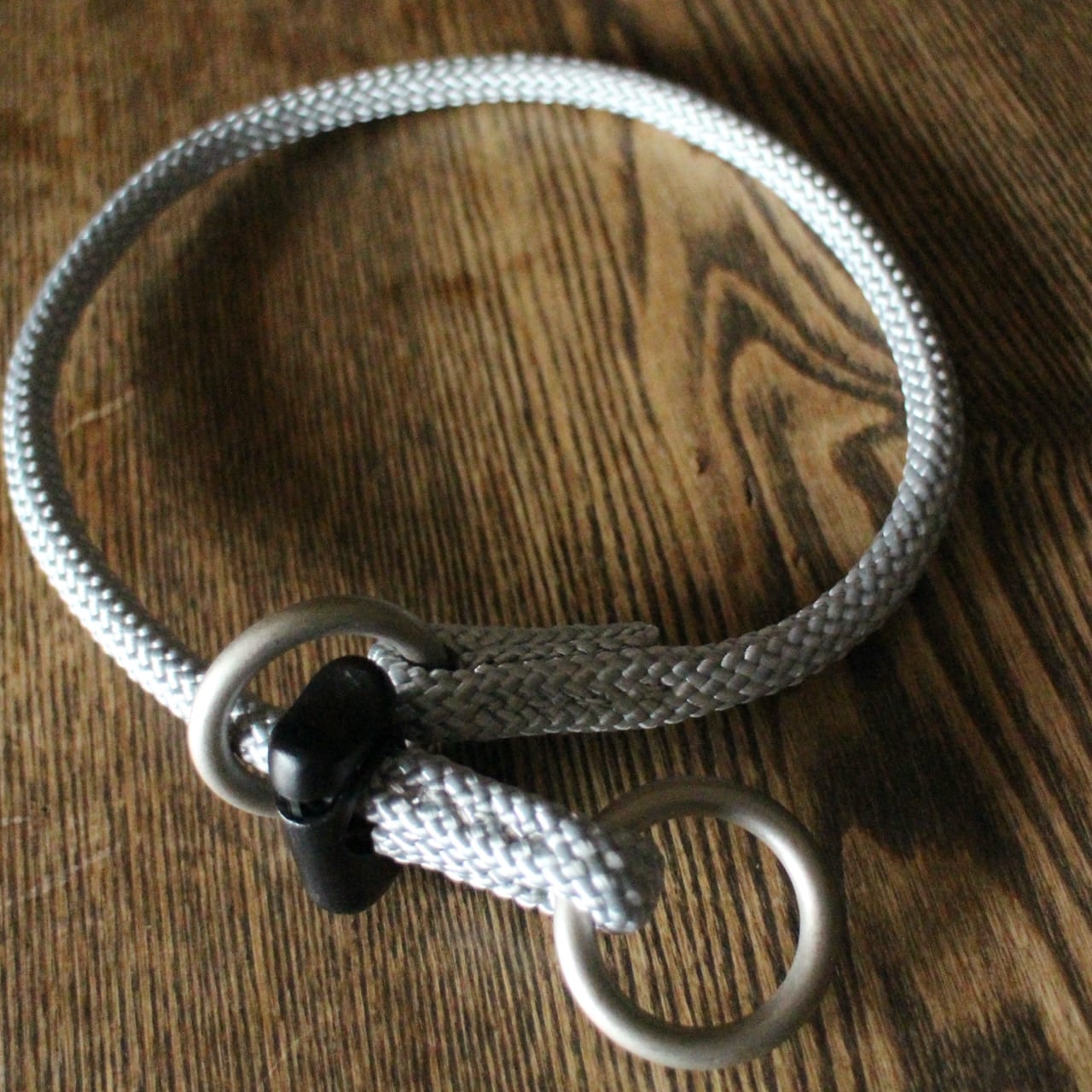 スリップリーシュと同じ構造の首輪バージョン。カラーとリーシュをセパレートで使用することができることで、リーシュの長さを変えれることやドッグランなどで犬の首にカラーだけを残すことができます。またベーシックリーシュと併用することでジェントルウォーク以外でのロープの捻れを防げます。